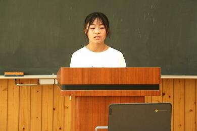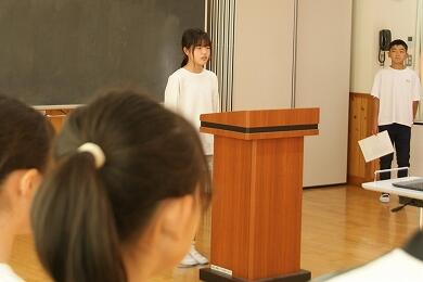 本日(10月29日)の朝の活動は、9つの委員会の後期委員長による自己紹介と委員会活動の紹介(オンライン配信)でした。各委員会の代表らしく堂々と話していました。今後の活躍が楽しみです。
