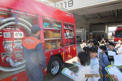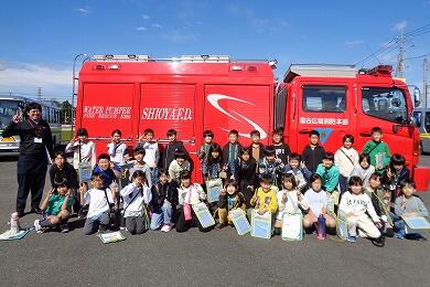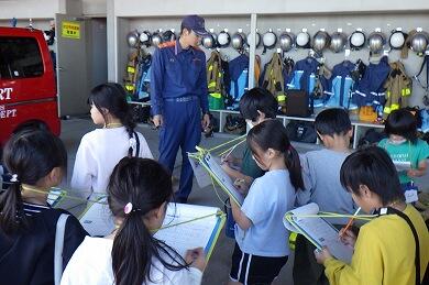 先日(10月29日)3年生が社会科の校外学習で「氏家消防署」に行きました。今回の校外学習は、「火事から人びとをどう守るの」という単元の学習で「火災から地域の人々の生命や財産を守る消防署の働きや、それらに従事する人々の努力や工夫を理解し、地域に住む一人として火災から身を守って生活しようとする態度を養う。」ことを目的としています。
