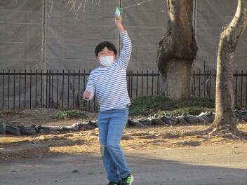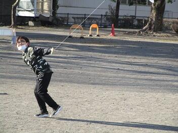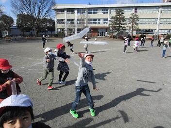 ちょうどいい感じの風も吹いていて、上手に風をとらえた児童は、長い時間滞空させることができていました。