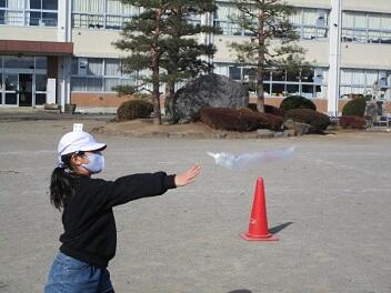 2年生が生活科の時間に風船ロケットを飛ばして楽しみました。