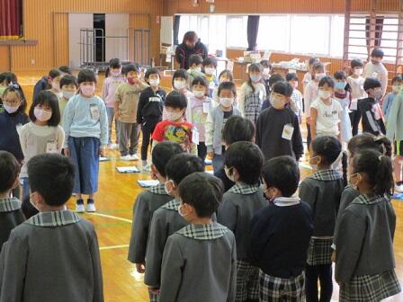 代表児童が感謝の言葉を述べたり、3年生がつくったメダルをプレゼントしたりしました。