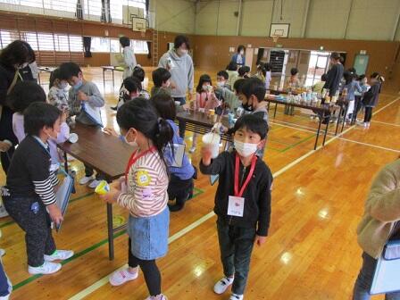 1年生が学校を案内したり、1年生がつくった手作りのオモチャでいっしょに遊んだりしました。