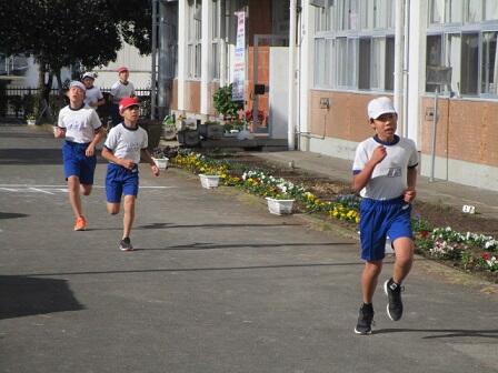 本日、2校時目に6年生が持久走記録会を実施しました。