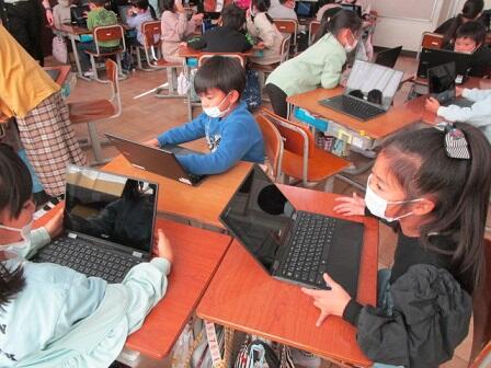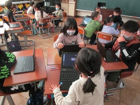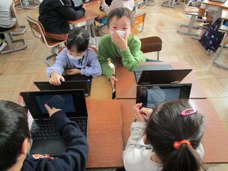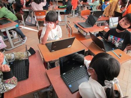ICT支援員さんの協力を得て、1年生に情報モラルの授業を実施しました。