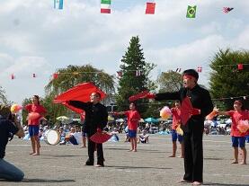 3曲目のクライマックスは「3段タワー」です。最近、テレビや新聞でもその危険性が取り上げられています。本校でも安全性に配慮しながら練習に取り組んできました。実は、一番最初に体育館でタワーの練習をしたときに、全てのタワーが成功していました。しかし、校庭でのタワーは想像以上に大変だったり、欠席者や見学者がいたりして、その後、全てが成功することはありませんでした。しかし、当日は全て成功。子どもたちの気合い、やる気、そして本番の強さに圧倒されました。