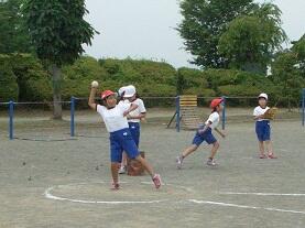 6年生の児童が1学年児童の検査補助やお手本を示すなど、子どもたちは励ましあい協力しあいながら全力で取り組んでいました。1年生からは応援の掛け声がかかる中、6年生のずば抜けたスピードやソフトボールが飛んでいく様子を目の当たりにして、びっくりしていました。また、上級生のお兄さん姉さんから、優しく手をひかれながら移動する様子にも、心が癒される思いがしました。
