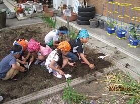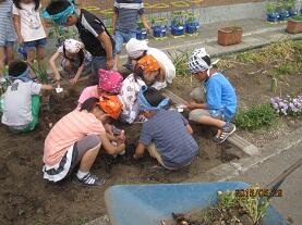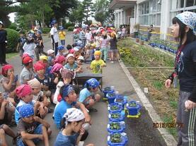この後、夏から秋に向けて「マリーゴールド」と「サルビア」の苗を各学年の花壇に植えつける予定です。