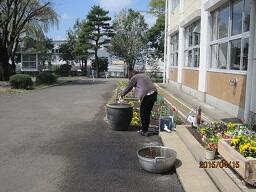 玄関脇には大きなカメがあり、そこには「蓮」が植えてあります。ここ数年、植え替えを行っていなかったため、昨年度は花の付きが悪くなってきました。そこで、今年の彼岸過ぎに、何年かぶりの植え替えを行ってみました。うまく咲くか心配ですが、楽しみにしたいと思います。