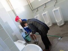 今年1回目のお掃除ボランティアさんの来校日でした。寒さの厳しい季節になりましたが子どもたちを励ましてくださり、子ども達も寒さに負けずに元気に清掃活動に取り組みました。今日は、南小のボランティアさんがトイレ掃除専用に作ってくださった厚手の雑巾を配りました。子どもたちが、床磨きのために市販の薄手の雑巾で苦労して床を磨いていたのに気づいて、わざわざ作ってくださった物です。本当にありがたいことです。