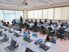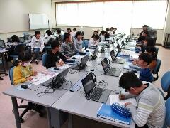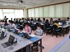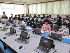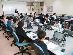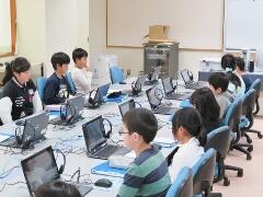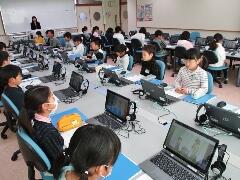 前時の復習から、応用(アニメーション)の仕方を学びました。文字が様々に動いたり、跳んだりする野様子を見て感動していました。