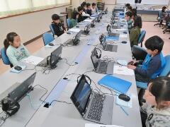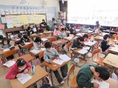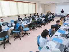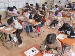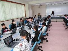 初めてのパソコン教室では、マウスの使い方からスタートし、2時間でイラスト入りのカレンダーを作り上げました。初めてパソコンをさわる児童も多く、「ドキドキ」しながらの作業でしたが、「指示をよく聞き」作品が完成すると大喜びでした。