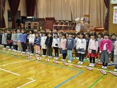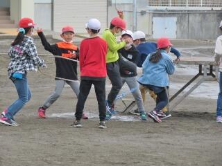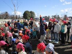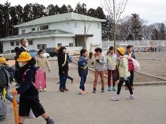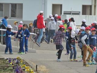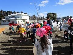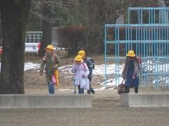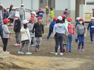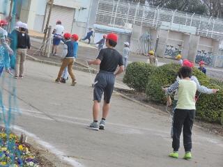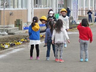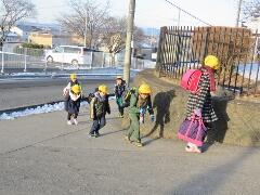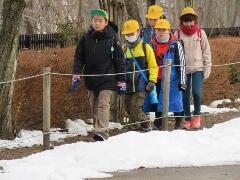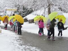 今日は、真っ白な校庭で遊ばせたいと思います。(職員で道路の雪かきをしました。)