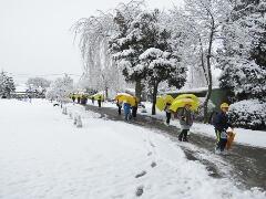 登校時に降雪、路面の凍結が予想されます。学校でも、明日の登校については指導いたしました。明日の朝登校する時には、「安全に歩行」するようご家庭でも声をお掛けください。