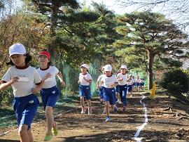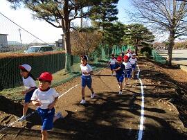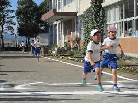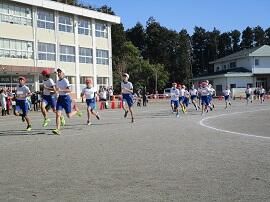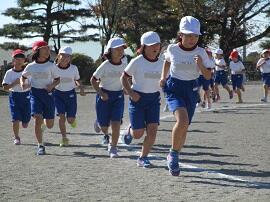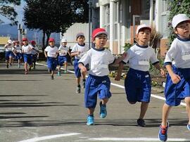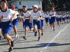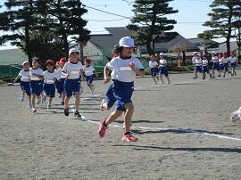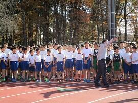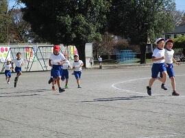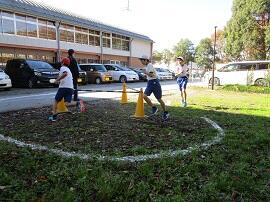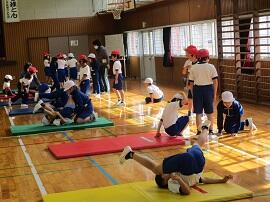 体育の授業では、半そで・ハーフパンツで元気に活動しています。