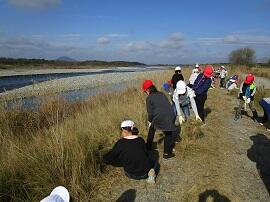 鬼怒川の河川敷で、外来植物の除去作業を行いました。