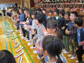 最後に代表児童がお礼の言葉を述べ、花束をお渡ししました。