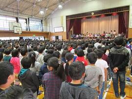 学年の発表の後には、全校で「ふるさと」を合唱しました。
