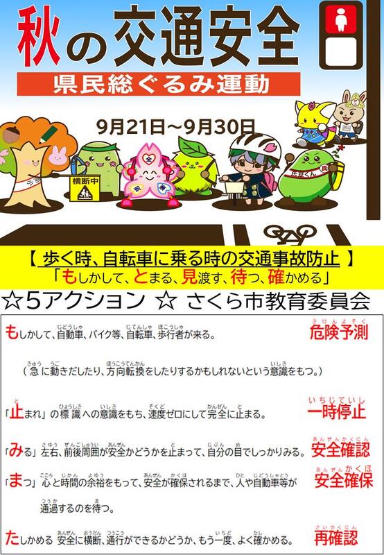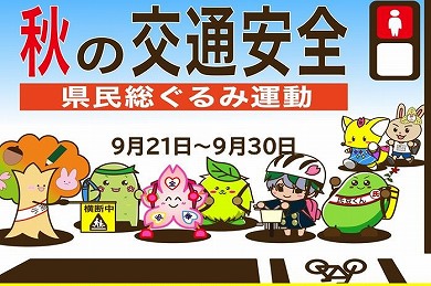 9月21日(日)から30日(火)までの10日間にわたり「秋の全国交通安全運動」が実施されています。