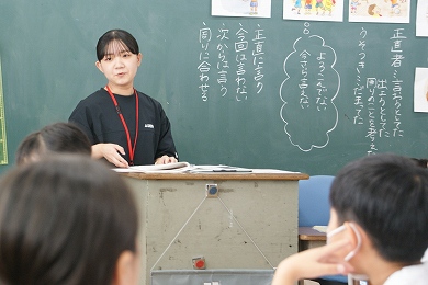 また、以前にもお知らせいたしましたが、9月1日から4週間(9月26日まで)、教育実習生として本校の卒業生である渡邉心愛(ここな)さんが、本校で研修や授業参観、T2による授業実践、そして研究授業を体験しています。