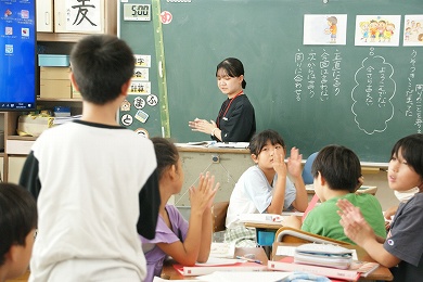 この時間は、渡邉心愛先生が研究授業として行いました。ここな先生は「はっきりと、わかりやすい指示」が出せるので、子供たちも安心して課題に取り組むことができました。