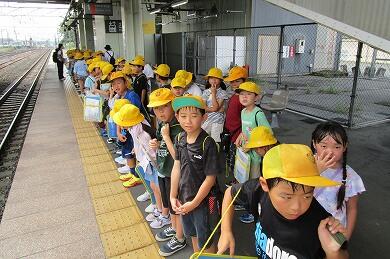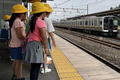 昨日(9月18日)、2年生が生活科の校外学習で、JR宝積寺駅からJR氏家駅まで電車に乗る体験をしました。今回の校外学習は、「みんなで つかう まちの しせつ」という単元の学習で、公共物や公共施設の利用を通して、それらのよさを感じたり働きをとらえたりして、身の回りにはみんなで使う物があることやそれらを支えている人々がいることなどに気付く事を目的としています。