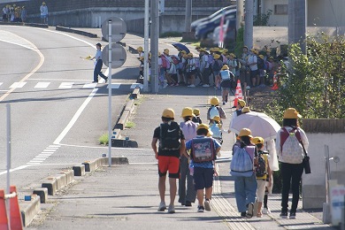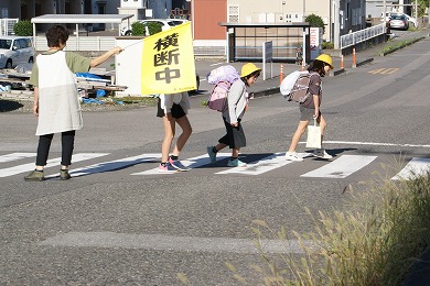 《登校の様子》秋の交通安全運動「おはようございます!」