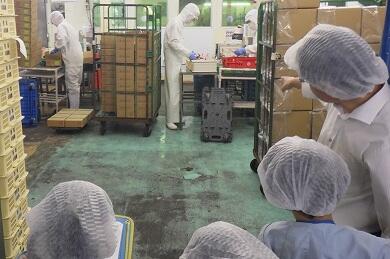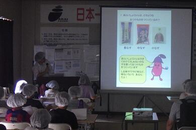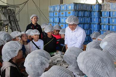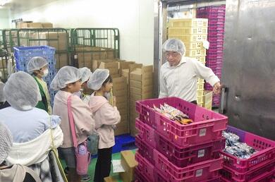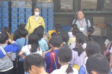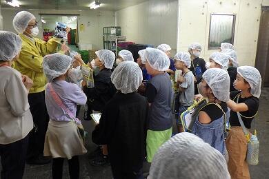 先日(9月24日)、3年生が社会科の校外学習で「荒井食品」に行きました。今回の校外学習は「物をつくる仕事ではたらく人たち~工場の仕事~」という単元の学習で「市内の工場を見学し、原料の入手・生産工程・販売などの様子を調べ、生産を高めるためにいろいろな工夫をしていることを知る」ことを目的としています。