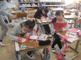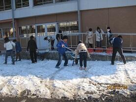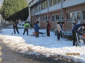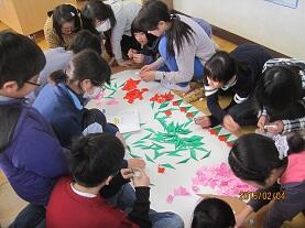 環境委員会は、体育館北側職員駐車場の除雪作業を行ってくれていました。図書委員会は図書紹介カードの作成を、広報委員会は先日全校生で作った折り紙の花を使って校門脇掲示板の掲示物の作成を、運動委員会は体育倉庫の整頓と砂場の砂ならしをする姿が見られました。また、保健委員会・給食委員会なども、インフルエンザの予防に貢献しようと各階の流しの石鹸の補充や各学級の配ぜん台の清掃などの作業を行いました。