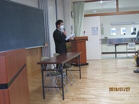 1月27日(水)の午後1時30分より、来年度入学する1年生保護者への説明会を多目的ホールで行いました。