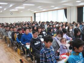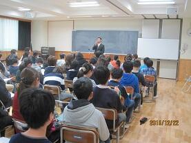 12月22日(火)6校時には、「親子学び合い事業」に続いて「中学校説明会」を、氏家中学校の生徒指導担当の先生をお迎えして、多くの保護者を交えて行われました。