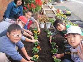 また、校舎前の各学年の花壇ではグリーン活動で「パンジー」の苗を移植する子ども達の姿がありました。明日の持久走大会のゴール付近を、色鮮やかなパンジーで飾ってくれました。