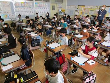 毛筆の指導が始まる3年生には、外部講師をお招きしています。