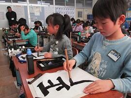 3年生の書写の授業では、講師の先生が来てくださいました。