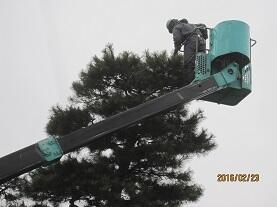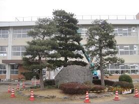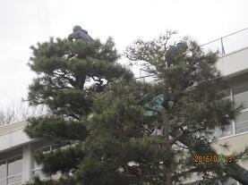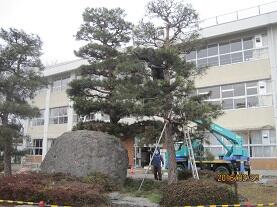 昨日から、造園業者による樹木の剪定が始まりました。玄関前の“松の木”の剪定を行っていますが、今年度は、校庭のアカマツと校門脇のクロマツの剪定と校舎西端のケヤキの枝詰めを予定しております。