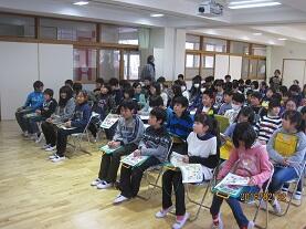 青色申告会からも数名の方が見え、租税教室の様子をご覧になっていました。子ども達にとっても身近な“消費税”などを例えて説明してくれ、とてもよい勉強になりました。