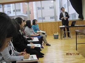 後半は、更にワークショップ(参加体験型学習)型の研修を行い、人権研修などで中心となる活動の前に行う「アイスブレーキング」の手法を体験することができ、我々教職員も和やかな雰囲気の中での研修となり、たいへん有意義な研修会となりました。