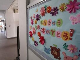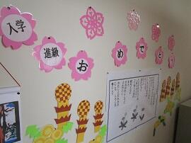 校内のあちこちに、進級を祝うメッセージが見られます。