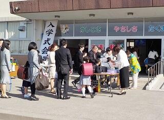 お父さんやお母さんと一緒に、元気に登校してきました。