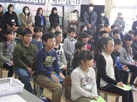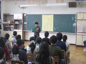 歌とリコーダーの発表の後、思い出や将来の夢、お世話になった人への感謝の言葉を作文にして発表しました。
