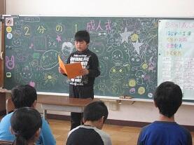 「授業参観」4学年では、2・3校時目に総合的な学習「2分の1成人式をしよう」の発表会をクラス単位で行いました。
