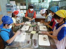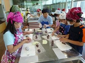 また、「味わい工房」では、“田舎まんじゅう作り”に挑戦しました。子ども達は、協力し合って“まんじゅう”を作りました。自分たちで作った“まんじゅう”をお土産に持ち帰る児童もいましたが、その味は格別においしく感じられたことと思います。