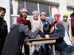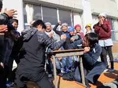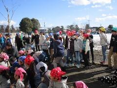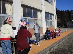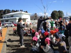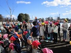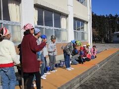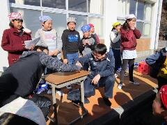 お昼休みにあいさつ集会委員会の企画で「未来予想ゲーム」を行いました。インフルエンザの流行期のため、室内での開催でなく、校舎前のオレンジロードで行いました。「サイコロで一番大きな目を出す人はだれ?」「じゃんけんで勝ち残る人は?」「腕相撲で勝つのはどっち?」等の問題を出し、子ども達は楽しそうに予想して手を上げていました。