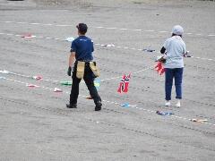 本日、PTA会長さんをはじめPTA役員と教頭・体育部の職員で、運動会に向けて万国旗の準備をしました。
