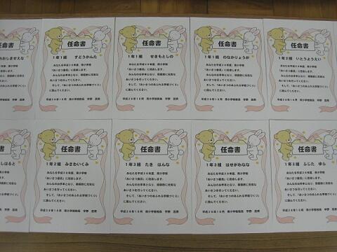 今日で、1年生から6年生までの「あいさつ委員」の任命式が終了しました。各学級のあいさつ委員一人一人に「任命書」を手渡しました。基本、各学級に「平成28年度あいさつ委員」が4名ずついます。