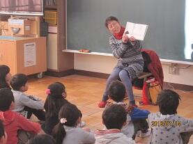 保護者の図書ボランティアの方の中には、小さなお子さん連れでのご協力ということで、児童と一緒に読み聞かせに加わっていただきました。