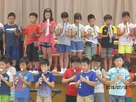 そして最後には、5・6年生の有志による「南っ子バンド」の伴奏で「ビリーブ」を全校児童が歌いました。みんなで一緒に楽しい「音楽朝会」の時間過ごすことができ、気持ちよく一日をスタートしました。今後も、色々な音楽活動を通して子ども達の情操を豊かに育てていきたいと思います。♪