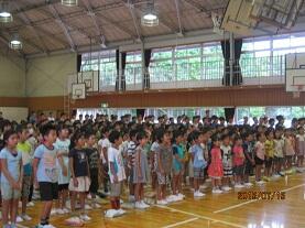 今朝は、「音楽朝会」からスタートしました。毎朝、各学級でも“朝の歌”を決めて歌っていますが、今日は、全校生で「ビリーブ」を歌いました。