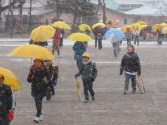 児童が下校の時は止んで欲しいと思います。明日の朝が心配です。路面の凍結等が予想されますので、ご家庭でも安全面での指導お願いいたします。