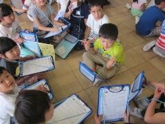 生活科の学習で、1年生と2年生合同の活動2回目を行いました。1回目の「いっしょにあそぼう」に続いて、2回目は1年生への「がっこうあんない」です。特別教室ごとに2年生が簡単な説明をしたり知っていることを教えてあげたりしました。1年生の面倒を見ながら校内を歩く2年生の姿はかっこよかったです。1年生の「楽しかった」の言葉が2年生にとって、とてもうれしく、満足できる活動となったようです。 (担当:三尾谷学年主任)