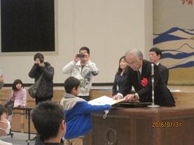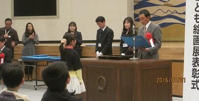 1月31日(日)、13:00から「子ども絵画展」の表彰式が氏家公民ホールにて行われました。会場は厳粛な雰囲気で、76名の被表彰者と保護者、後援団体や関係者が多数参加し見守る中、表彰式が行われました。1時間を超える式でしたが、保育園・幼稚園の園児も姿勢良く、堂々とした姿で呼名されると元気の良い返事をして表彰を受ける姿に感動を覚えました。
